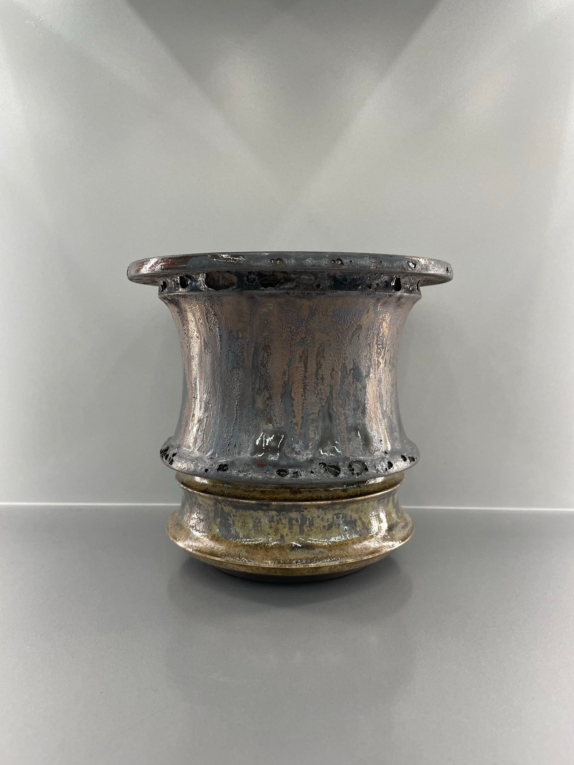 本作は、植物の美しさを引き立てる独創的なフォルムと重厚感を兼ね備えた植木鉢に、田島氏が思い描く“LINKIN PARKらしさ”を表現した特別なデザイン。上下で異なる釉薬を用いた掛け分けにより、「これまで」と「これから」──そして、ツインボーカルというバンドの象徴的な存在をイメージ。